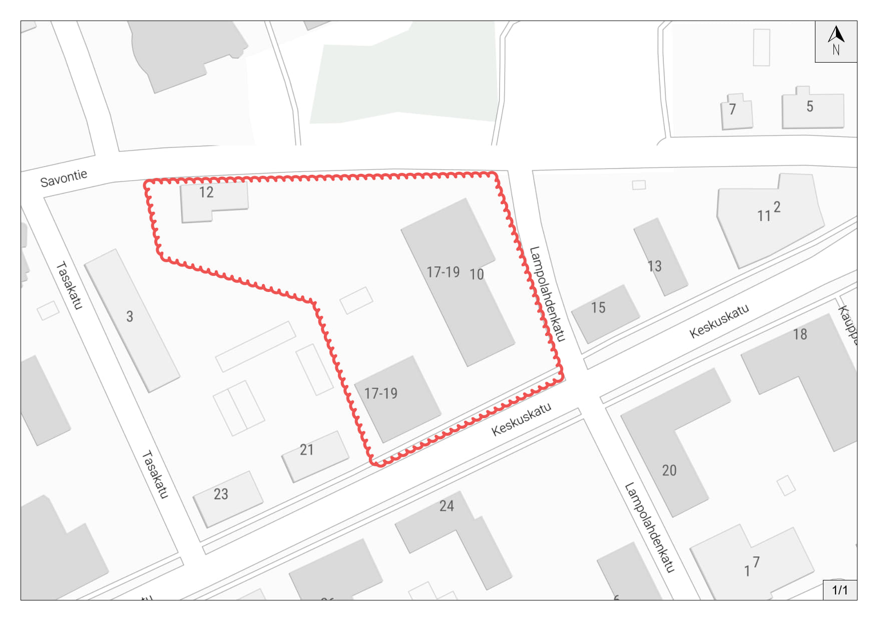 Vesikatko vaikuttaa siis Savontie 12 ja Keskuskatu 17-19 kiinteistöihin.
