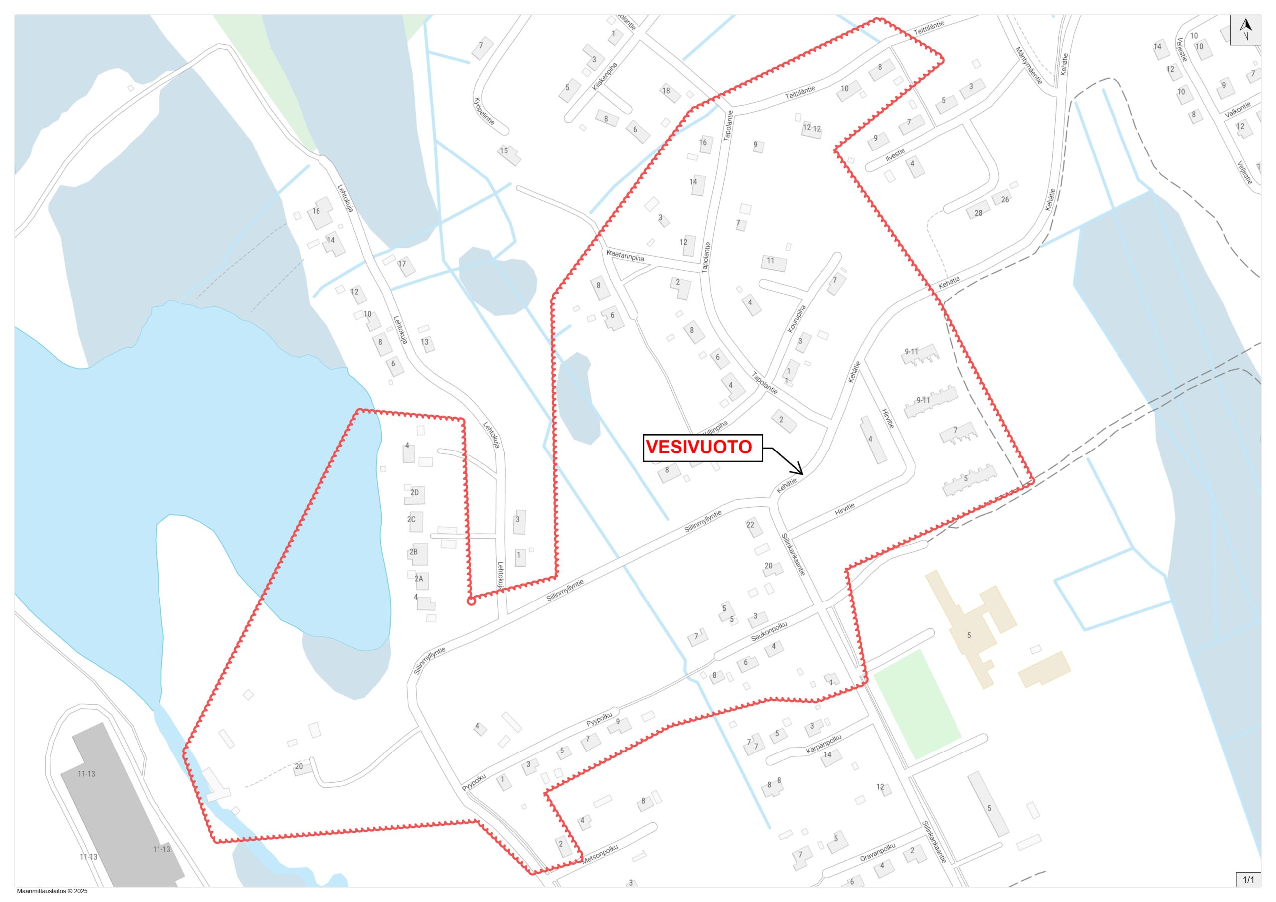 Vesikatkoalue laajenee oheisen kartan mukaiselle alueelle.